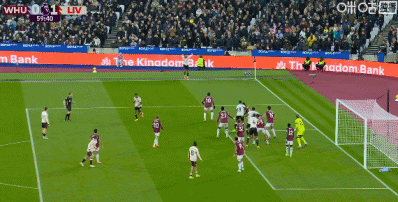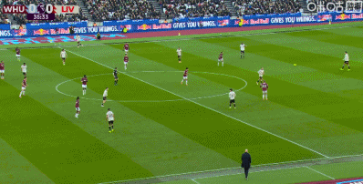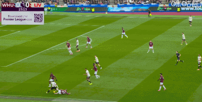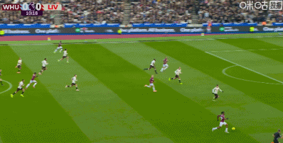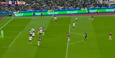 第90+2分钟,西汉姆联后卫冒顶,加克波门前半转身破门完成传射,利物浦2-0领先