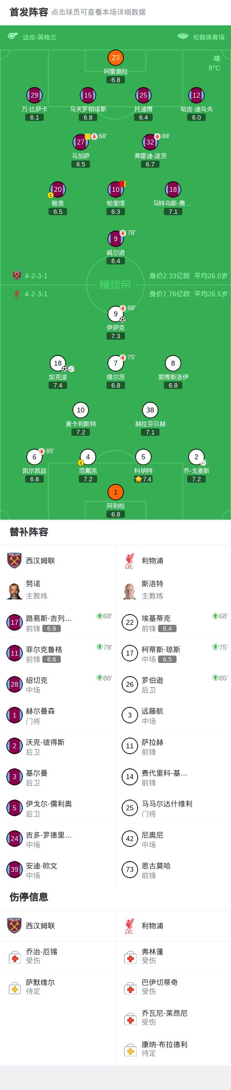 北京时间11月30日英格兰足球顶级联赛第13轮,西汉姆联主场对阵利物浦。上半场,伊萨克近距离侧勾被阿雷奥拉扑救;下半场,加克波助攻伊萨克推杆破门斩获红军生涯英超首球,帕奎塔不满判罚抱怨裁判连得两黄被罚下,加克波抓住对方冒顶机会凌空破门。最终比分西汉姆联 0-2 利物浦。